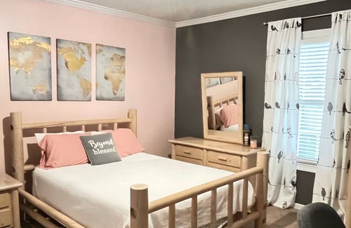 Relax with the whole family at this peaceful place to stay. Downtown Cartersville is located only .5 miles away which is well within walking distance. Lake point Sports complex is conveniently located only 2 miles away. So we can host all of your teams sporting events. Sweet, Cozy, can sleep up to 8 people!