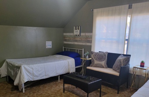 If you like Vintage, you will love our Country Loft. Newer memory foam beds, (Queen, double, and twin) sleeps six guests comfortably with a brand new bathroom and lot's of amenities. We are located in a small quaint town in Sterling, close to Lawton, Elgin, Medicine park, Chickasha, Duncan, Marlow, Fletcher, and Fort Sill. Perfect for a couple or families attending Ft. Sill Graduation. We have been hosting since 2017 and are currently super host with Airbnb. We live downstairs of the property and we have friendly cat's on the porch. The laundry room is a common area with kitchenette.