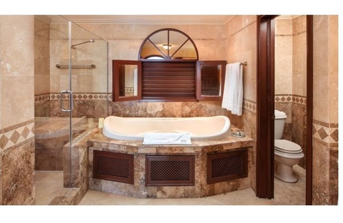 - The 2 Private luxurious bathrooms with spacious wardrobe, a large dressing area, whirlpool tub, separate toilet room, separate spa shower with multiple shower heads and double vanity.