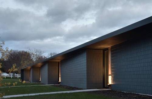 The Flats were designed with the modern traveler in mind by renowned architects Johnsen Schmaling Architects of Milwaukee. This development was honored by the AIA-Wisconsin with an Honor Award in 2020. Each 500 sq ft flat has a bedroom, bathroom, and full kitchen, as well as large windows that offer views of the private patio. Located within walking distance of Egg Harbor, the Flats offer easy access to a range of shops, restaurants, and bars.