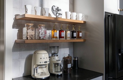 ☞ Fully stocked coffee bar with Smeg bean grinder & coffee maker, french press, various syrups and more!