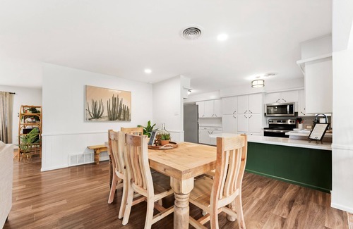 You will fall in love with "The Gathering Place"! Enjoy a spacious & pristine clean home with an open concept, featuring 2 living areas, abundant natural light, and completely updated inside & out. Enjoy a full kitchen to make your favorite meals, and enjoy a 65" RokuTV (Netflix, Hulu, Amazon Prime included) with Fast Wi-Fi, or unwind under a large back patio. Wake rested and ready to enjoy the day with complimentary coffee or tea.