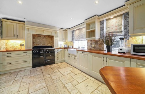 At basement level you are met with a Solid Oak 8 seater Dining table with leads on to a the stunning 18ft kitchen - fully stocked with all the necessary mod cons and a Range Master Cooker.