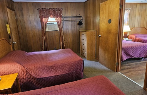 Cottage Seven is one of the many two room units that has 4 double beds, full kitchen, flat screen cable TV, air conditioners in both rooms, picnic table, BBQ grill and porch. The full kitchen is equipped with a stove top, full sized refrigerator, coffee maker, toaster, cups, plates, pots, pans and utensils. Cottage Seven is just the right choice for your family and friends!