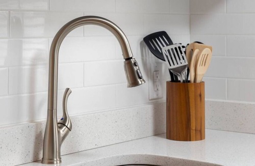 The kitchen is fully equipped and has a small oven range with a 4 coil range. We have a drip coffee machine, tea kettle at your disposal. There are a small countertop and bar stools to eat in.