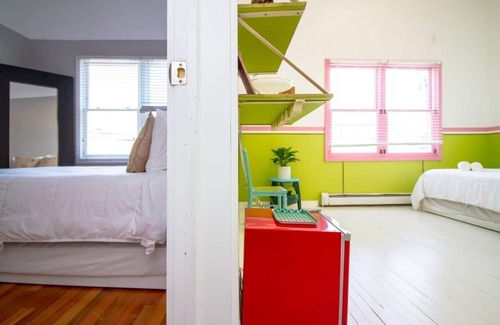 Bright and sunny 2 bedroom accommodation in the heart of the hippest neighborhood in Rockaway Beach! Located only 1 block from the beach this is the perfect summer weekend getaway for friends and/or family. Each room was individually designed by local artists to help keep the funky vibes of the town part of your experience every minute of your stay! Wonderful bars and restaurants all around you. Enjoy a day sunbathing in the sand or take a surf lesson! Endless summer fun everywhere you look!!
