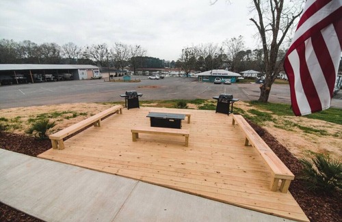 Our Tiny Home community offers a community deck which is where the gas grills are located, along with a gas fire pit with seating for plenty to enjoy the deck.
