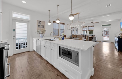 Welcome to “The Java House”, a beautiful home in the Seacrest Community located right off Scenic Hwy 30A! This luxury home offers 5 bedrooms, 3.5 bathrooms, and will sleep 10 guests comfortably. As you enter the home on the first floor, a dining area that seats 8, and a kitchen with stainless steel appliances, granite countertops, and additional barstool seating. Just up the stairs to the second floor, you will find the master bedroom with a King bed and an ensuite bathroom, a guest bedroom with a King bed, and a laundry area with a front-load washer and dryer. As you make your way up to the third floor of the home, you will find a second guest bedroom with a Queen bed, a third guest bedroom with a Queen bed, and a bunk room with a Twin over Twin bunk bed. You will also find a private, rooftop deck on the third floor that offers lounge chairs that are perfect for relaxing with a drink in hand and watching the sunset. Just outside the home, you will find a covered front porch with rocking chairs, an outdoor shower that can be used after a long day at the beach, a large propane grill that is great for grilling out with friends and family! This home is also just a quick walk away from the nearest beach access, as well as the 12,000-square-foot community lagoon pool inside the neighborhood. Come and see why “The Java House” is the perfect 30A vacation home that brings families back year after year!