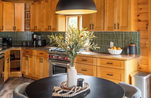 Cozy up by the wood fireplace after leaf-peeping hikes, explore nearby cider mills, and enjoy crisp nights under the stars by the firepit. Projector, full kitchen & modern comfort in a unique circular design.