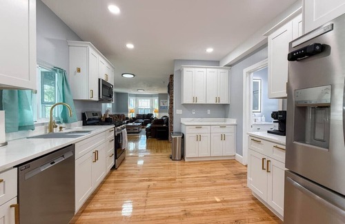 Spacious & stylish 5-bedroom, 3.5-bath retreat just a short walk to downtown Conway. Sleeps 12 comfortably w/ 6 beds. The massive living room features a big screen TV and plenty of seating, perfect for relaxing after a day of adventure. Enjoy cooking in the fully remodeled kitchen with high-end appliances, or unwind in the private outdoor Hot tub With access to Pequawket Pond and close proximity to local restaurants, and outdoor activities, this is the ideal White Mountains getaway.