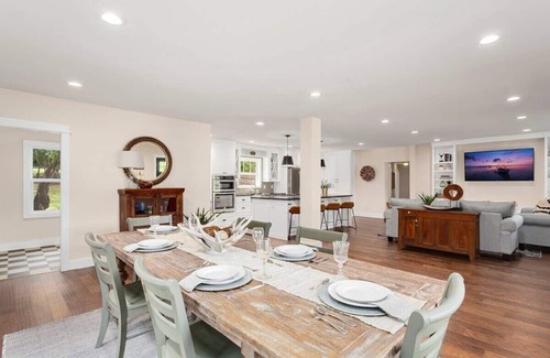 Upon entering The Mission Rock House, you'll immediately be greeted by our ultra-cozy, open concept living space! Here, you'll find our over-stuffed sofa and love seat, midcentury modern-inspired chairs, driftwood coffee table, large Smart TV and stunning built-in shelves. We find this space is perfect for catching up with friends, settling in for a good movie or even catching a mid-afternoon nap!