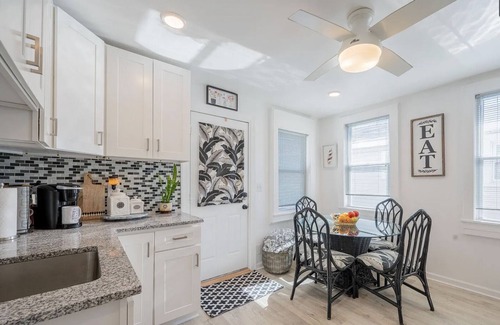 A home away from home! This beautiful, newly renovated beach house comfortably sleeps 6, and is a short 4 block walk to the beach. Master bedroom has a queen, 2nd bedroom has a full and a twin, and the living room has a pull out couch! All linens supplied. 55" TV wifi, and a full eat-in kitchen. New washer and dryer to wash the sand out of your shorts! Getting ready for your days at the beach? No problem! This house comes with 4 beach badges, beach chairs and beach towels so you don't have to pack them! Once you return home, rinse off in the spacious outdoor shower, and the backyard is perfect for grilling and enjoying the warm summer nights. Or take a stroll to the nearby restaurants with all the charm of the Jersey Shore - some local favorites are 10th Avenue Burrito, Bar Anticipation, The Boat House, Sally's Beach Bar and many more. This Rental will be the one you will want to revisit in the coming summers.