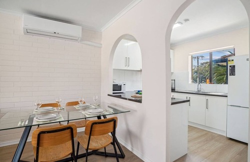 Welcome to The Palms! Our cozy, beachside unit offers spacious living with a bright and airy atmosphere. Featuring a fully equipped kitchen, comfortable living areas, and a relaxing outdoor balcony with seating, this home is ideal for families. The stylish décor and bunk bed room make it great for kids, while parents will love the convenience of the beach, Nespresso coffee machine, parking, fast wifi and desk space. Enjoy easy walk to the beach to create lasting memories with your loved ones!