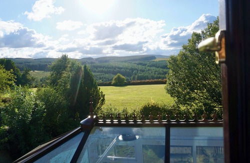 This tranquil home sleeps 7 in 4 bedrooms (Superking, King, Dbl, Single). Boasts stunning panoramic views. Exceptionally spacious picture postcard sunroom.