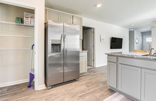This home is brand NEW and has been tastefully decorated to fit our Salt Tee theme! As you enter the home you will make your way into the large living space. A huge sectional couch, board games, and SmartTV make this a great place for everyone to hang out. This space is open to the fully loaded kitchen and has an oversized peninsula with bar seating and all your kitchen needs!!