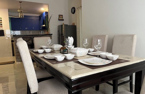 Discover this brilliant 2-bedroom gem in Jaipur. This welcoming apartment features 2 queen beds, 2 bathrooms with a bidet and shower, and additional spaces like a cozy living room and a functional office. Guests can enjoy amenities like an iron, hair dryer, WiFi, AC, and even a fitness room. Whether you're looking to relax or stay productive, this peaceful retreat has everything you need. It's easy to see why you'll be able to unwind at our place.