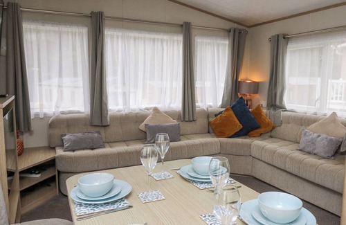 Amenities: Gas central heating. Gas oven and hob, microwave, fridge/freezer, toaster, kettle. Smart TV, WiFi. Electric and gas included. Bed linen and towels included. Off-road parking for 1 car. Enclosed decking with furniture. Two well-behaved dogs welcome. Sorry, no smoking. Check in from 3pm, Check out 10am. Shop, pub and beach 1 mile. Note: There are 4 steps upto the lodge, please consider when booking