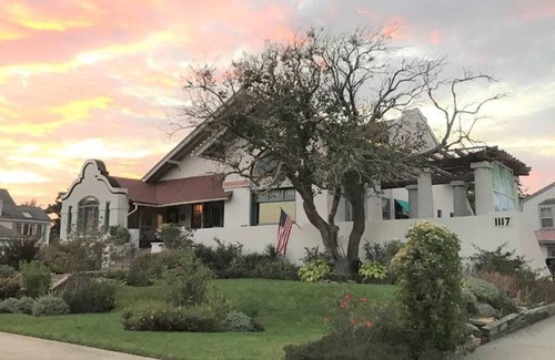 Lovely renovated apartment located just one block to the beach. This second floor one bedroom apartment is located in the cottage next to the main house. This modern unit provides a full kitchen, office area, dining area for four, washer and dryer. The bedroom offers a king bed and full bath the additional sleeping area is a queen pull out sofa in the living room. The apartment is also supplied with linens, eco-friendly bath products, beach, chairs, towels, umbrellas, bikes, and bike lock up area. Guests will also have access to a shared courtyard with fire pit, grill, outdoor shower and parking for two cars. Parking is located down the driveway to the left side of the Mission Inn. You will pass through the shared courtyard to enter this unit. Entrance is on the second floor the cottage building. Bicycles and beach equipment are located in the first floor of the cottage through the entrance on the front of the cottage. This property is no smoking anywhere on premise.