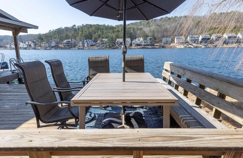 Enjoy the lake with a private dock at this updated luxury waterfront home at Lake Arrowhead! Enjoy your morning coffee out on the dock or around the fire pit! There is also a hot tub for those cool fall evenings. This is an updated home on the lake with a screened in deck out back and a fire pit area that leads to the private dock. During the day, you can rent a boat on the lake, play tennis, swim in the community pool or arrange to be taken on an amazing tour of our award winning local wineries. Lake Arrowhead also has some of the best Pickleball Court setups in North Georgia! At night, you can cook a great family meal in the full kitchen, or visit the Country Club for dinner! With our Smart TVs, you can log on to all of your streaming services and have a movie marathon. Deer roam the area frequently so be sure to have your camera ready!