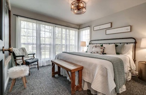 Welcome to The Yellow Door! This FULLY STOCKED home is a secluded oasis 10 minutes from the city on 20 acres of woods and grassland with a creek. Wildlife is abundant! Come and play on the 150 ft. zip line, roast smores at the firepit, enjoy yard games in the wide open grassy field, or simply sip coffee or wine on the large decks. The property has a code accessed gate, alarm system, and motion lights. The decor is mid-century modern / farmhouse and is cozy yet serene. Come and Stay Awhile!