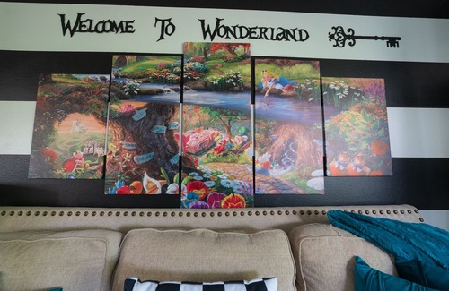 If you love Alice in Wonderland you will fall in love with this house! There is something to amuse you around every corner. Located in the heart of Ozark with so many things to do. The house is three bedrooms and has a basement with a playroom on one side and a theatre on the other. Relax in the hot tub or on the beautiful deck. Your kids will be astounded by the Cheshire Cat hiding in the tree, the tea party, the themed rooms but especially what is awaiting them down the rabbit hole!
