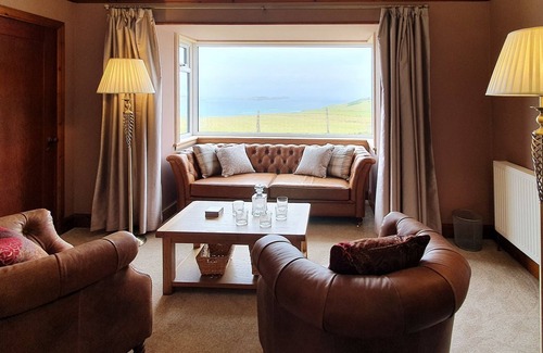 Bathroom: Bath With Shower Over, Heated Towel Rail, Toilet. Oil central heating, electricity, bed linen, towels and Wi-Fi included. Travel cot and highchair available on request. Welcome pack.. Enclosed garden with patio and sitting out area. Private parking for 2 cars. No smoking.. Tor Aluinn is situated in the small hamlet of Coldbackie, 3 miles from Tongue, which has a local shop, restaurants and a bar along with craft shops and a post office. This detached property offers a superb level of comfort and space throughout. There is a storm porch to the front and a spacious reception hall, the living room is large with a tremendous feature fireplace all with chesterfield style furniture and a smart television with a full sky package for those rainy days. There is a ground floor wet room and a beautiful fitted kitchen that has a good level of appliances and is open plan to the dining area. To the rear of the property is a laundry room and boot store. Upstairs there is a master kingsize bedroom with an en-suite shower room, a further kingsize bedroom and a twin bedroom both served by a family bathroom. Externally there is a fully enclosed private garden where you can leave your bikes. There is parking to the front of the property for 2 cars. The views are breathtaking from all the windows to the front overlooking the Kyle of Tongue and the headland. The beach is 250 yards from the property down a steep footpath, which is ideal for a spot of paddling or sand castle building, or perhaps for taking your four legged friend for a stroll. Pub and restaurant 2.7 miles.