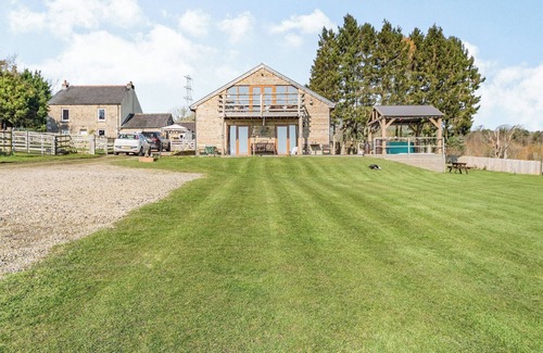 Kitchen area: Breakfast Bar, Gas Oven, Gas Hob, Range, Microwave, Fridge, Freezer, Dishwasher. Oil central heating, electricity, bed linen, towels and Wi-Fi included. Welcome pack. . Front garden with sitting out area, terrace and BBQ. Garden furniture (shared with other properties on-site). Hot tub for 8 (private). Private parking for 4 cars. No smoking. Please note: There is a first floor balcony with horizontal bars and large gaps, and an unfenced pond. No children under the age of 9 years old. Sorry, no hen or stag parties.. Huntercrook Lodge sits in an elevated position with grand views over rolling countryside and the Tyne Valley. Enjoying the most idyllic setting amidst stunning countryside, the ducks, hens and wildlife wander freely and the pet sheep graze in the adjacent field. With extensive gardens, a terraced decked area with pergola houses the sunken hot tub and outdoor seating and looks across to the pond and trickling fountain. In the evenings the romantic setting comes alive with twinkling lights and dark skies. A warm welcome awaits inside, with extra special touches for the guests. Prosecco on ice to greet you, a lovely welcome hamper and home baked cake! Simply park up the car, unpack and begin your holiday!