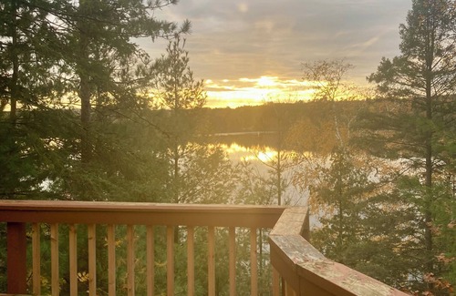 "Our beautiful lake home on Thunder Lake welcomes you, your family and friends to a true up north adventure!" Our lake home is nestled on a three-acre wooded lot. Come and enjoy your summer days boating, kayaking and swimming in the clear shoreline! Relax on the dock, full size deck, screened in porch or even the sauna! Cast in a line and catch some crappies, sunfish, bass, walleye and northern pike. Still feeling more adventurous? Bring your UTV and go four-wheeling on the many nearby ATV trails. Kayaks and paddle board are included with stay! You are welcome to bring your boat and dock at the cabin during your stay!