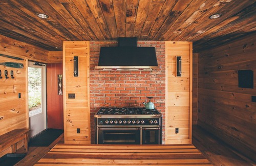 Outside, a beachside patio sits elevated just above the cobblestone shore. A pro-style gas grill makes for easy outdoor cooking and gathering. As idyllic as the Cedarwood Hollow is, the cabin itself is only the beginning …