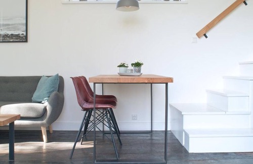 The Tiny house is in Malente on a small property with mature trees in a central but quiet location. The Kellersee is within walking distance, as well as shopping. The Tiny House is an absolute one-off. It is flooded with light and has unique features. Both the old Breitholz floorboards from a Berlin Art Nouveau villa, the elaborately reconditioned cassette door or the bathroom with a casual spatula technique ... all this makes our Tiny House something special.