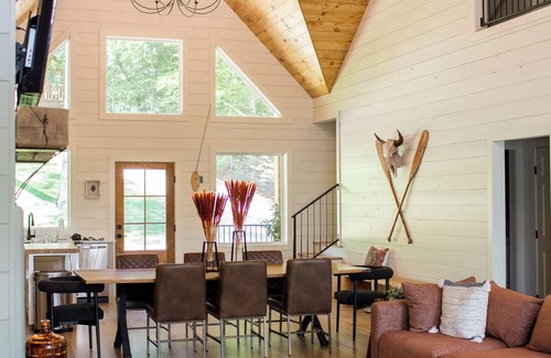 Newly built home featuring custom designs and high-end furnishings. It is a 4-Bedroom/2-bath vacation home with a fishing pier, fire pit, string lights, and a 6-person hot tub. This property is a fun, well-appointed home complete with high-end linens from Standard Textiles. A bonus for the kids is a shared tree house on the property! "Bobcat" Cabin shares a quiet cove with our "TIPI" cabin. Book one or both for your family vacation or work retreat!