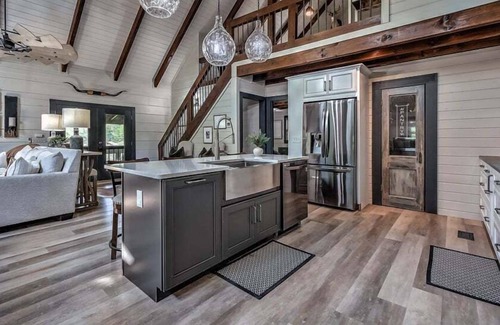 Tucked away just off scenic Aska Road and perched beside the rushing Toccoa River, this modern mountain retreat blends the serenity of nature with the comfort of spacious, upscale design. With room for 10 guests across four bedrooms, a sleeping loft, and expansive gathering spaces, Toccoa Time was made for family getaways and memory-making weekends.
