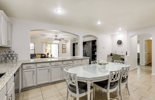 Embrace your inner desert dweller at this laid-back 4-bedroom, 2-bathroom Tolleson vacation rental. Tucked away 4 miles from Tuscano Towne Center, this single-story house offers the best of both worlds: convenience and seclusion. Satisfy the need for speed at the Phoenix Raceway or break a sweat hiking through Estrella Mountain Regional Park. After a day of adventures, bask in the sun in the backyard oasis and prepare a meal in the outdoor kitchen. Experience the Grand Canyon State today!
