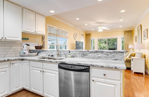 Ocean views and welcoming comforts of home will have you ready to extend your stay when vacationing at The Retreat 7A. This third-row top-floor condominium provides quick access to the beach and the privacy of a gated community. A bright and poised interior is beaming with joyful sunlight and charisma, providing a lovely reminder that you are at the beach and to savor the peace of your vacation. No detail has been overlooked to ensure your comfort with cable TV, complimentary WiFi, and quality decor being just a few of the many highlights offered at this home away from home. Stay in one evening and make a feast for your small group or walk to one of the restaurants located less than a block away. Your stay includes linens, cleaning, and use of the community pool/pool house. Come on down and join us for an exquisite and unforgettable Edisto Beach vacation!