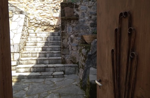 The house was built in 1856 by rocks and renovated in 2006.It consists of two bedrooms, one with a double bed and the other with one double and one single beds, a living room with a fire place, a sofa bed along with a fully equipped kitchen and a bathroom. A terrace with spectacular view and a patio. The house is located in the center of a traditional village tucked away in narrow lanes. It is located 100 meters from the point reached by car and from there access is on foot.Far from the noise of the city offers calm and relaxation and is a base to beautiful beaches such as Kalogria and Foneas and neighboring villages like Kardamyli and Stoupa.