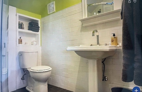 Welcome to a beautiful 750 ft.² well appointed apartment. Enjoy a good night's sleep with a Sterns and Foster’s queen mattress with views of the lake from your bed. The apartment includes a full kitchen with all new appliances, including a washer and dryer. The kitchen has all your needs for preparing food. The bathroom features a vintage pedestal sink, subway tile and a beautiful shower. Enjoy a large living area with wireless Internet and streaming service.