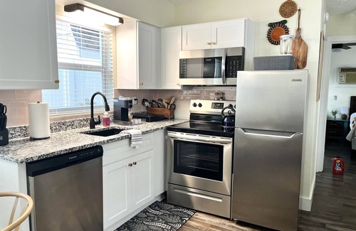Escape to the Florida sunshine and make yourself at home in our charming one-bedroom cottage, perfect for both short getaways and extended stays. This cozy retreat welcomes you with a warm and inviting living room, a fully-equipped kitchen ready for your favorite recipes, and a separate bedroom featuring two plush queen beds to ensure a restful night’s sleep. 😴