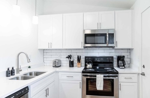More than just a hotel room, this entire apartment features all the conveniences of home. See our exceptional design for yourself! Plus, the quiet apartment community environment makes for a low-key but highly amenitized stay compared to hotels or normal rental apartment buildings.