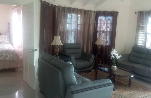 This new-built 3 bedroom 3.5 bathroom is ideally located in Draxhall Manor - 10 minutes from Ocho Rios. All the bedrooms have AC and ceiling fans; the kitchen is fully equipped and the laundry room includes a washing machine. Relax on the large back porch which is enclosed, for evening entertainments or family gatherings.