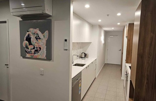 Located perfectly in the middle of Woden, this 1 bedroom apartment tucked away on the tenth floor, overlooking the rooftop pool, is one not to be missed. You can call this place home for your time in Canberra. It has one dedicated (free) carspace, is beautifully modern with a galley kitchen, lovely bathroom, Queen bed, all the up to date appliances you would expect from a new apartment, as well as Wi-Fi to enjoy. Enjoy views out towards the city and the excellent convenience of this apartment.