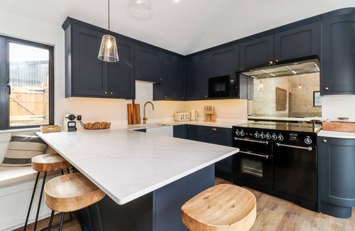 Amenities: Range cooker, combi/microwave oven, fridge/freezer, washing machine, dishwasher, coffee maker. Smart TV, TV, WiFi. Fuel, power, and starter pack for woodburning stove inc. in rent. Bed linen and towels inc. in rent. Hot tub. Off-road parking for 3 cars. Enclosed rear garden with lawn, patio, furniture. One well-behaved pet welcome. Sorry, no smoking. Shop 0.7 miles, pub 0.1 miles. Note: No arrivals on Sunday please