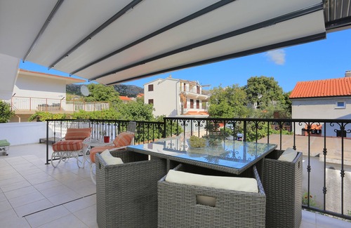 Apartment can accommodate 6 guests. Beds are situated in 2 sleeping rooms, but also in the living room, within 45m2. Guests can use a private terrace to enjoy the warm summer evenings. The apartment offers the sea view. Food can be prepared using barbecue which is shared with other guests too. This accommodation unit welcomes pets at an additional charge.