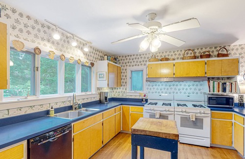 Back home, this four-bedroom retreat boasts a well-equipped, full kitchen with dual ranges for preparing anything from intimate breakfasts to full-course dinners for everyone in your party. Head into the dining room for mealtimes or family game nights and then kick back in the living area to stream your favorite channels on the smart TV.