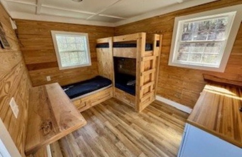Single-room cabin that sleeps 3 comfortably on memory foam mattresses (a 4th can fit with a sleeping bag, but space will be tight)