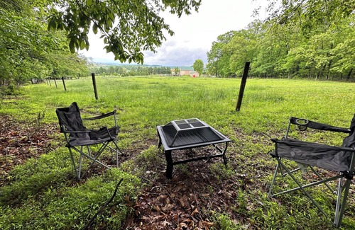 Cozy off grid cabin on a little horse farm at the base of the Blue Mountain. Enjoy the views from the covered porch, or by the campfire. Minutes away from Appalachian trail access, Cabelas and state game lands. This is roughing it at its fanciest, no running water, electric and a simple outhouse.
