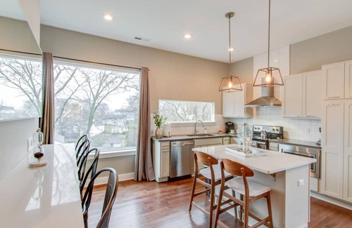 Discover the best of Music City from your brand-new, four-level townhouse with high-end finishes, refined décor, and plenty of natural light. Modern and immaculate, this luxe 3BR/3.5BA vacation rental offers comfortable accommodations for ten guests.
