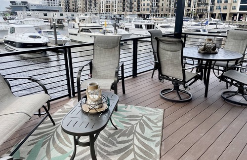 Stay on the water in unique upscale houseboat, a”boatominium” with luxury throughout - floating at dock on the Cape Fear River. Within walking distance to historic Wilmington, Live Oak concert arena, river walk, restaurants, museums and convention center.