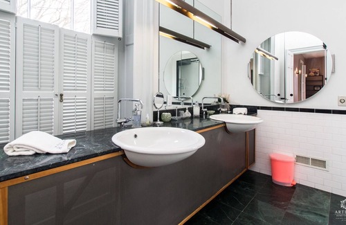 A 19-century Italianate Victorian-architectural masterpiece restored by renown architect Maya Lin. Each bedroom is designed with a theme. Glass-in dining porch, pool & ping pong table, karaoke, BBQ grill, tennis court. Great for friends or family reunions, group retreats, wedding accommodation, wedding, anniversary celebration. 20 minutes from tourist attractions (Mystic Seaport) and casinos. 20 minutes from Amtrak New London Station.