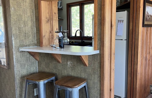 Our cabin consist of 3 levels. The top level has a fully equipped kitchen , dining , and living area. Connected by a spiral staircase leads you to the middle level. Here you will find 2 bedrooms and a full bathroom. Heading out the sliding door of the guest bedroom will lead you outside and down the stairs to the lowest level. We have equipped this area with a queen sofa sleeper ,TV, game console and bathroom with shower. You will also find the laundry area here. Almost like a separate apartment. Towels and linens are provided. We do receive cell service at our cabin . We do not provide a landline or Wifi. This cabin is not recommended for the elderly or infirm.