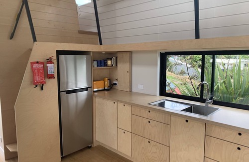 The tiny house retreat has its own private entrance and deck. It is self contained and close to all amenities, just a short walk to the Parua Bay Village.